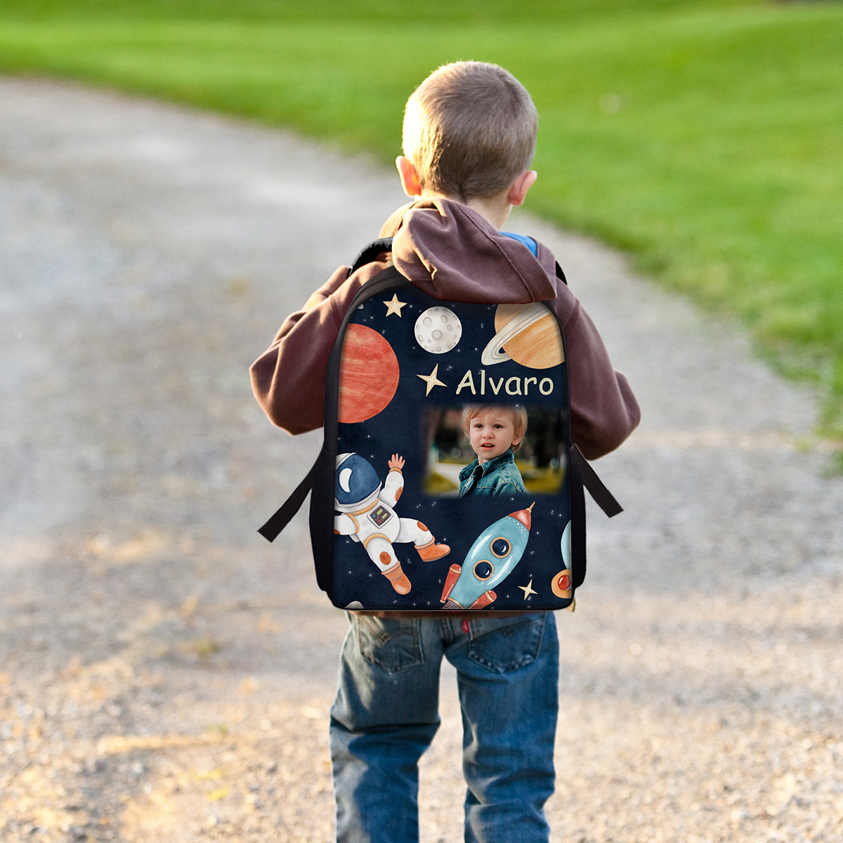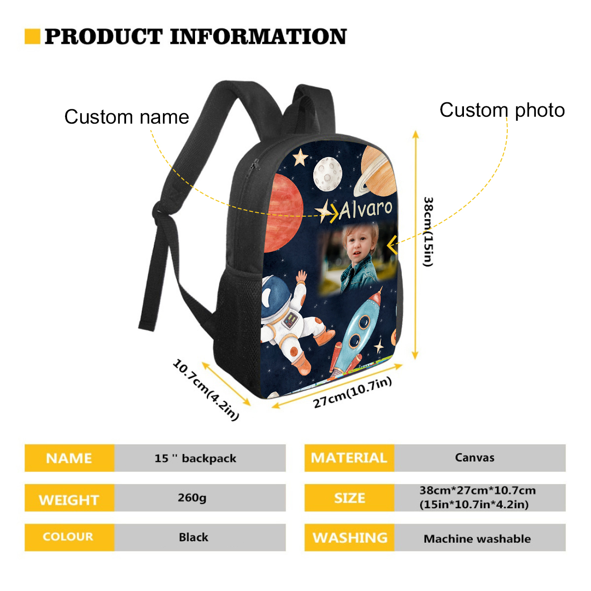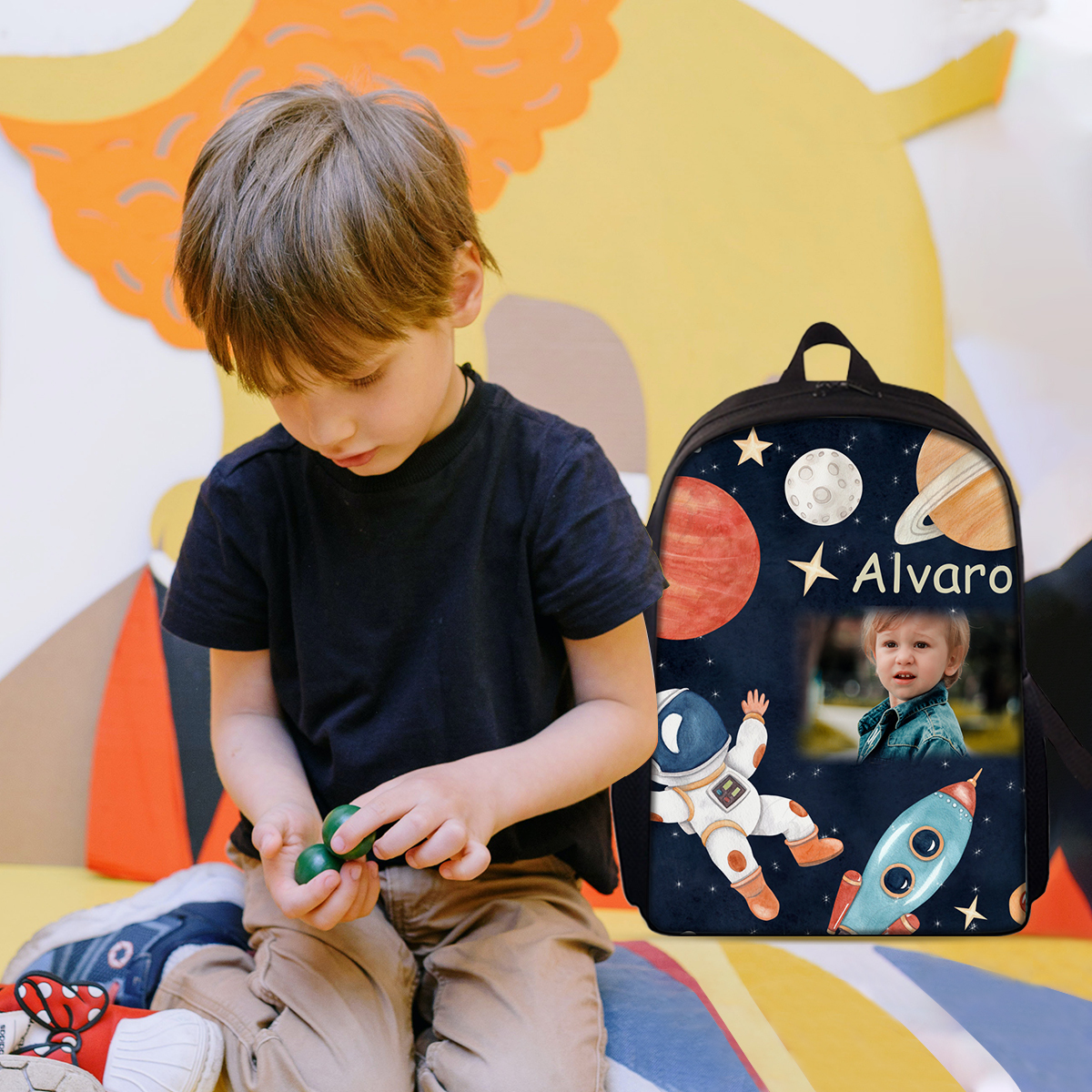Zaino con Nome Foto Personalizzato lettere stilizzati cartoon character Borsa da Scuola per Studenti elementari bambini ragazza Cancelleria viaggio